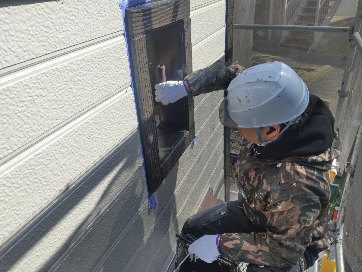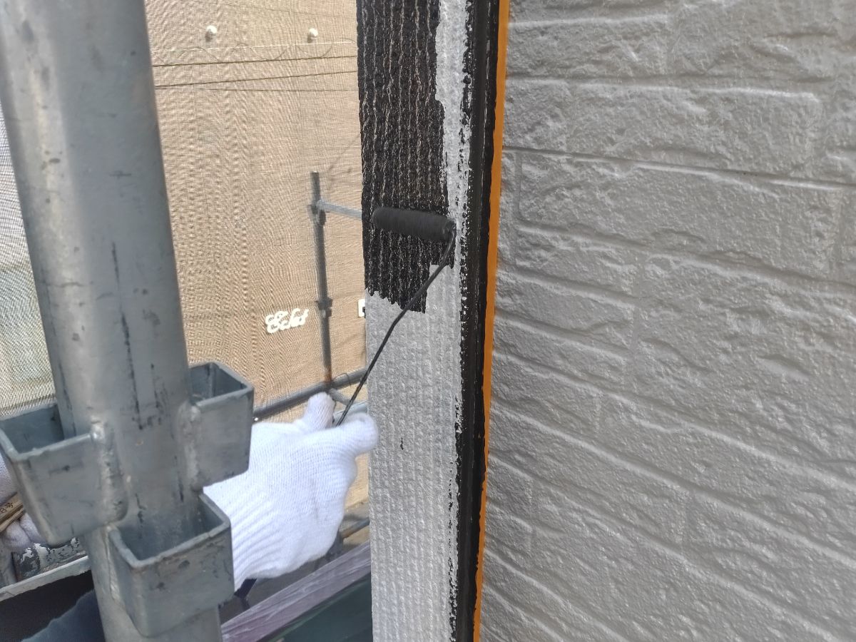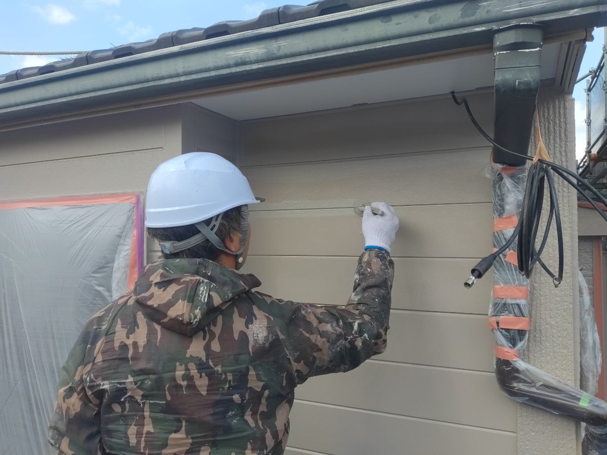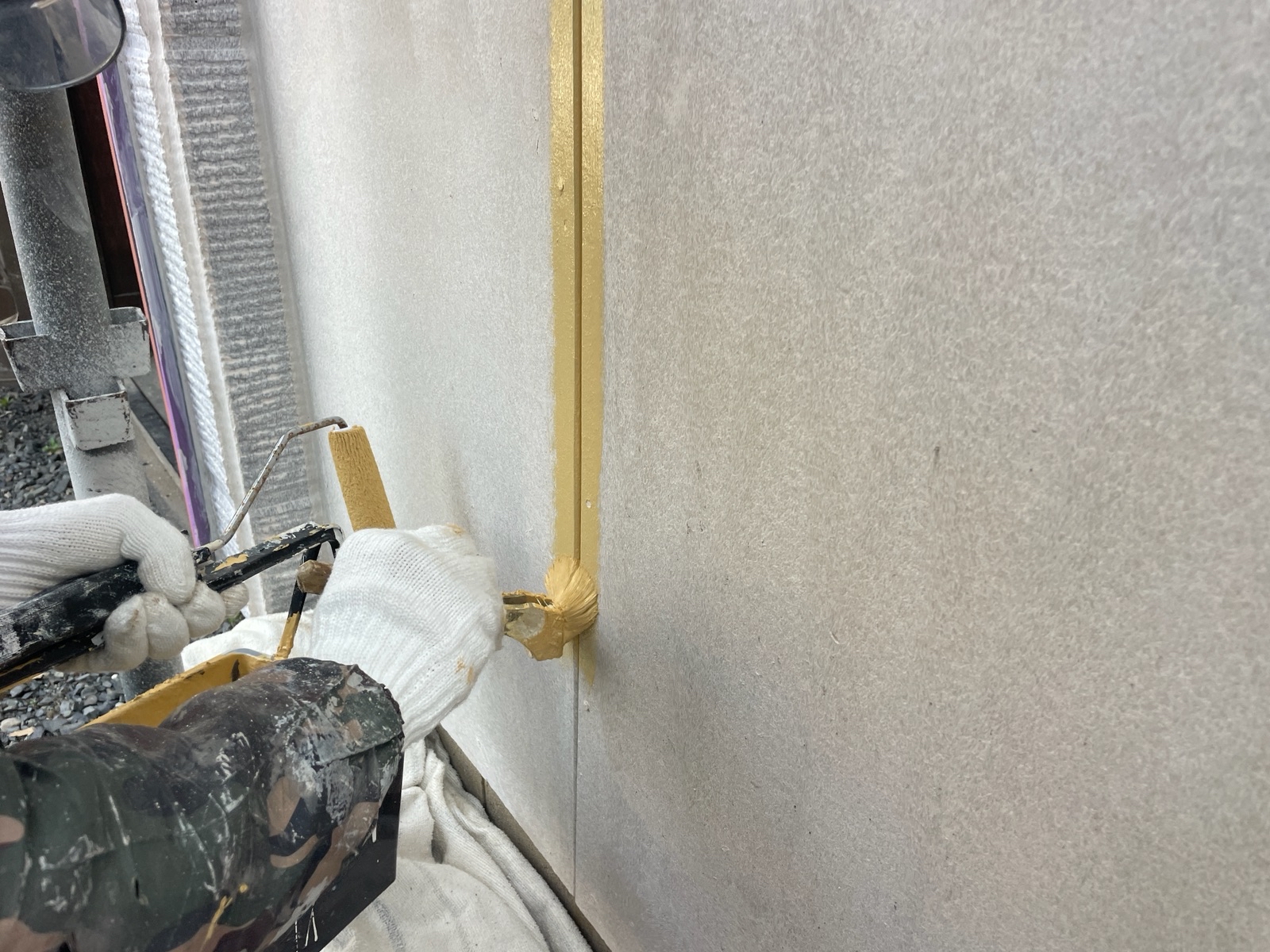 本日は、コーナーサイディング、付帯部の塗装をさせて頂いております。