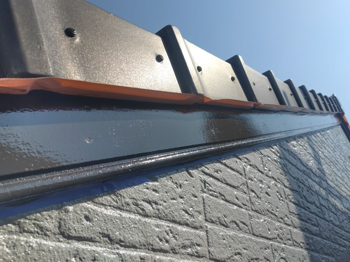 本日は、付帯部の塗装、瓦棒屋根の塗装をさせて頂いております。