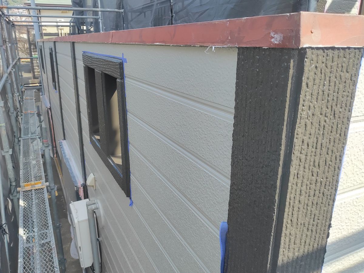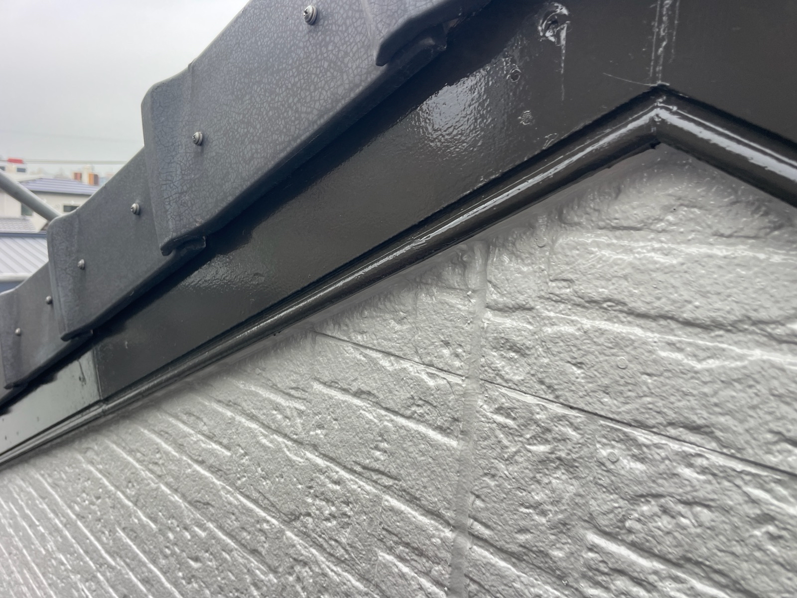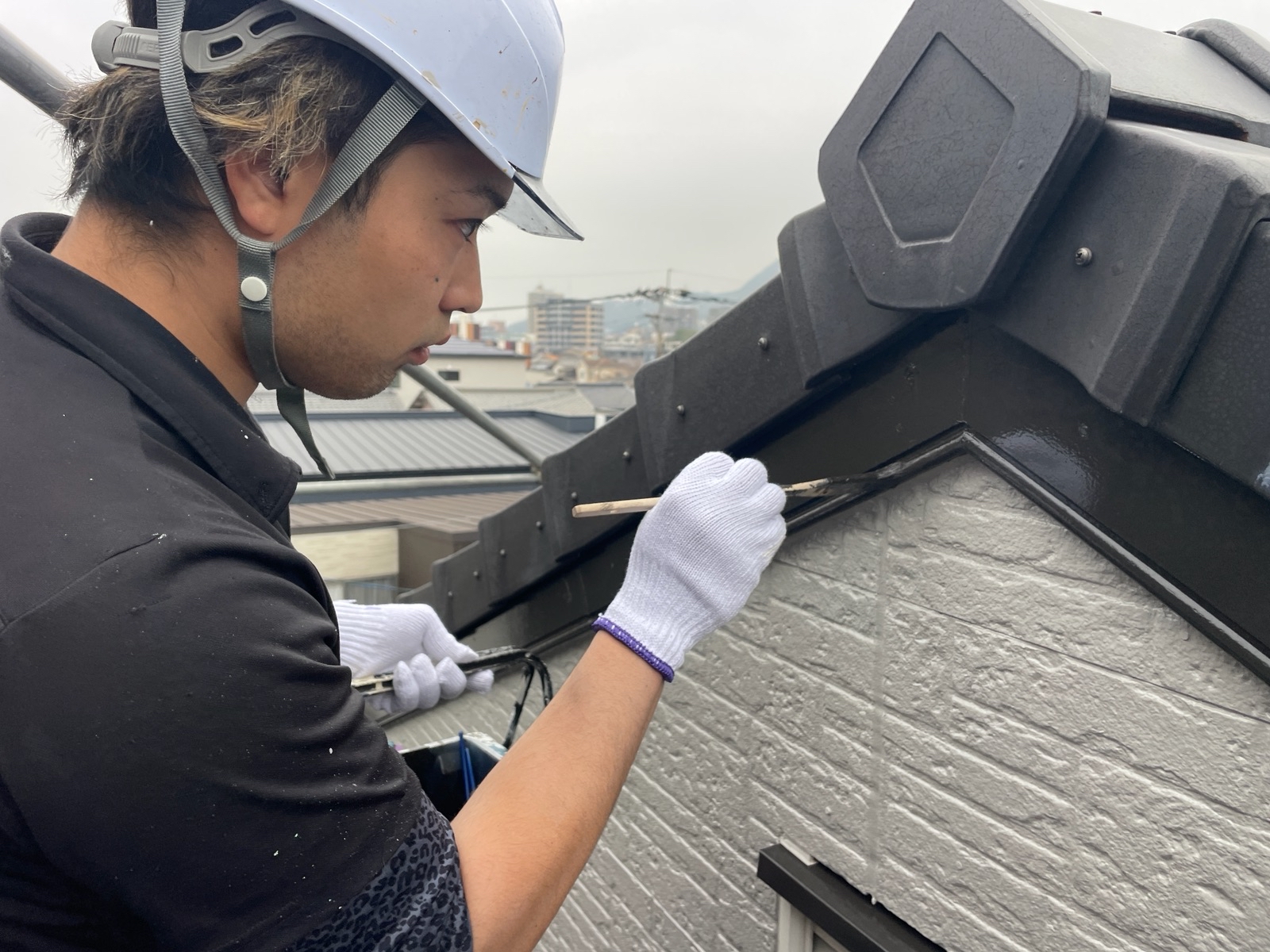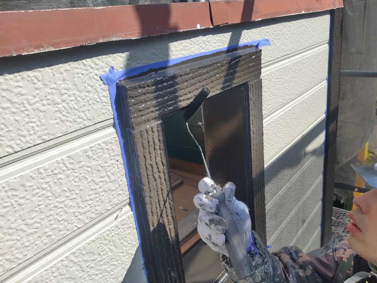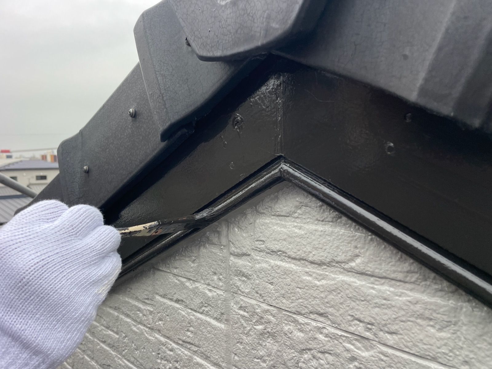 本日も付帯部やコーナーサイディングの塗装を行っております!