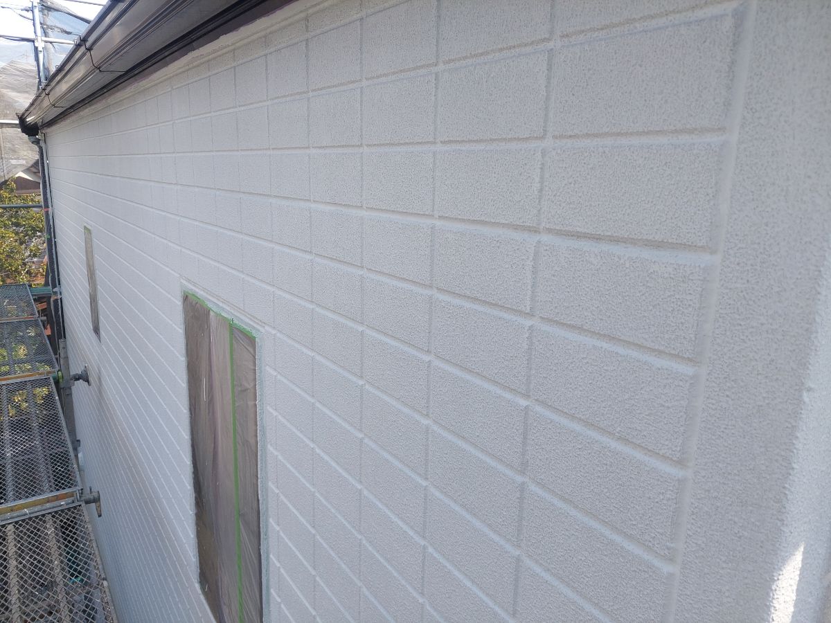 本日は、外壁張替部の上塗り1回目と付帯部塗装をさせて頂いております。
