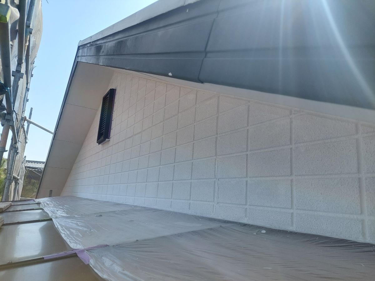 本日は、屋根の下塗り2回目・中間検査、付帯部塗装をさせて頂いております。