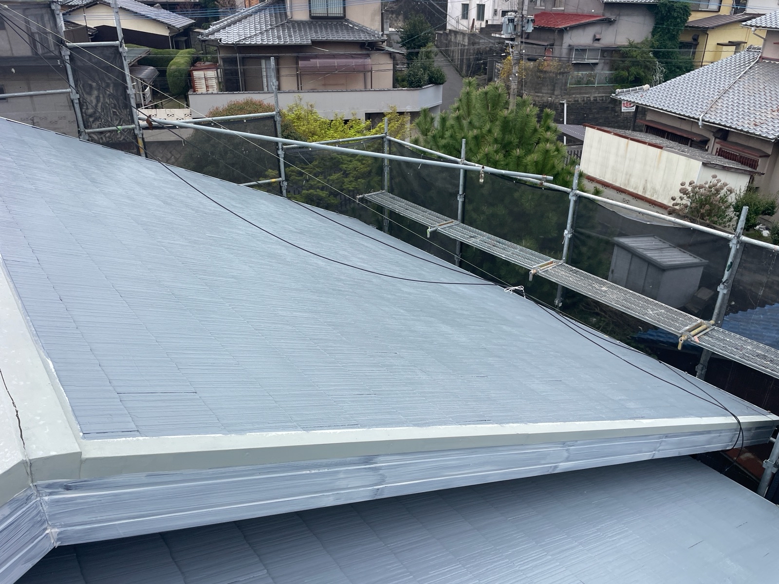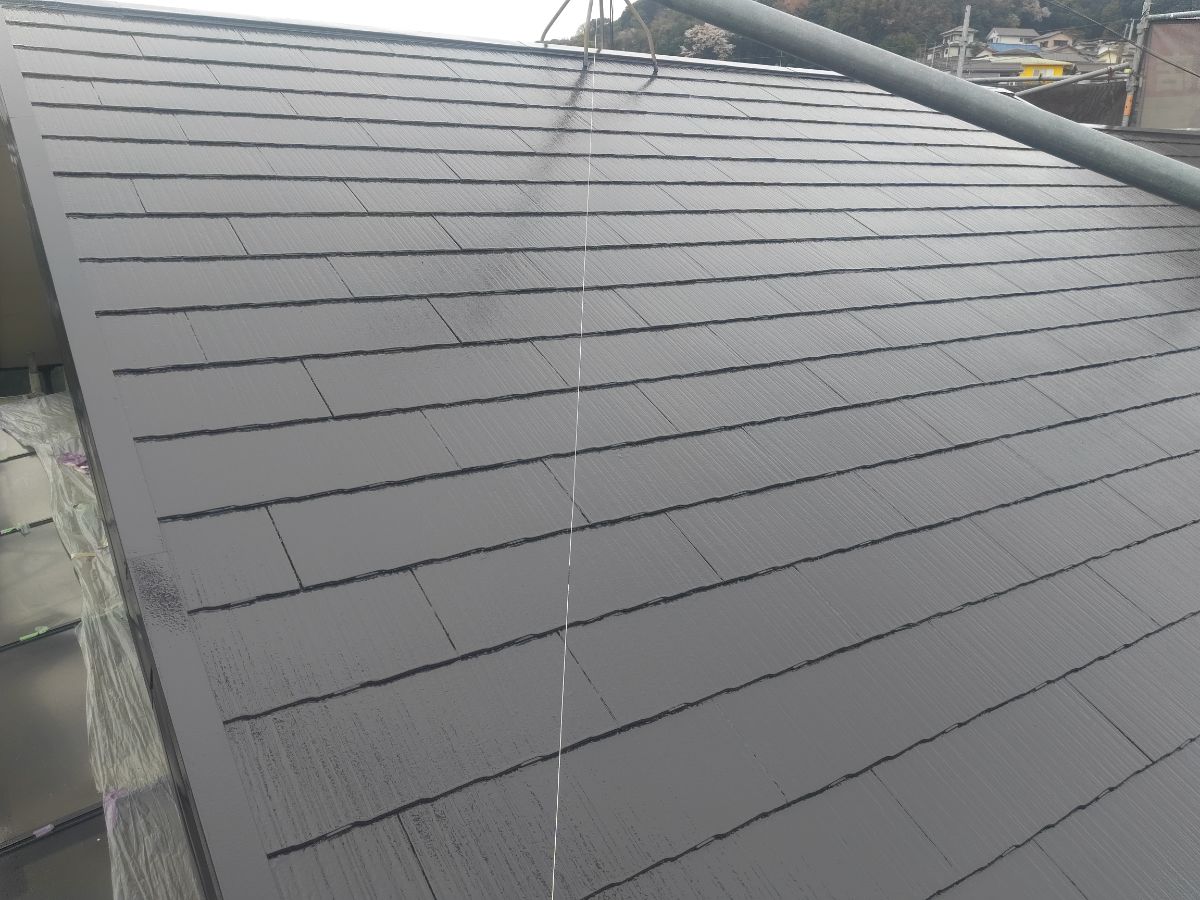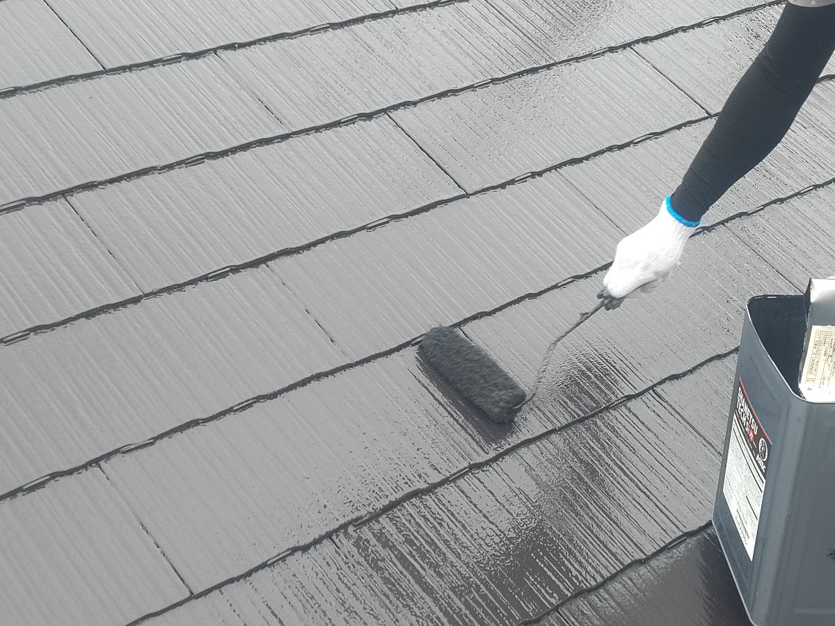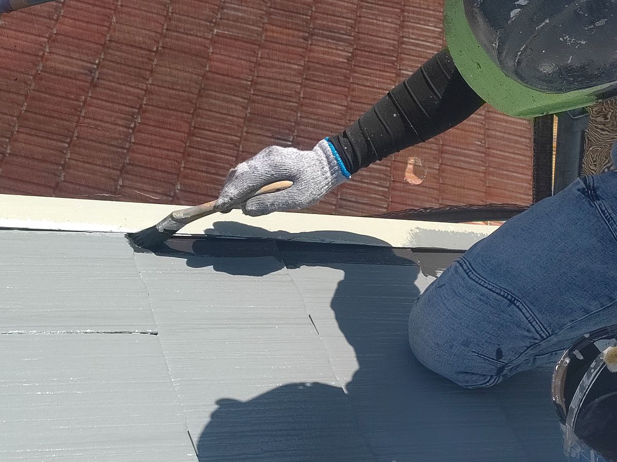 本日は、屋根の上塗り1回目、付帯部塗装をさせて頂いております。