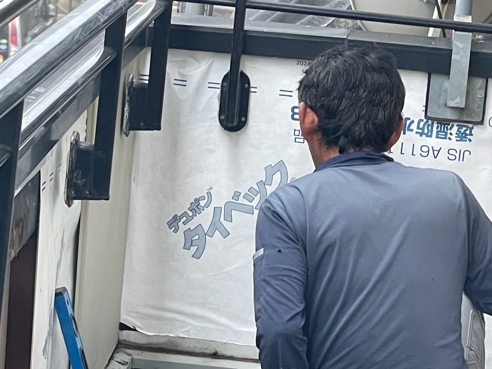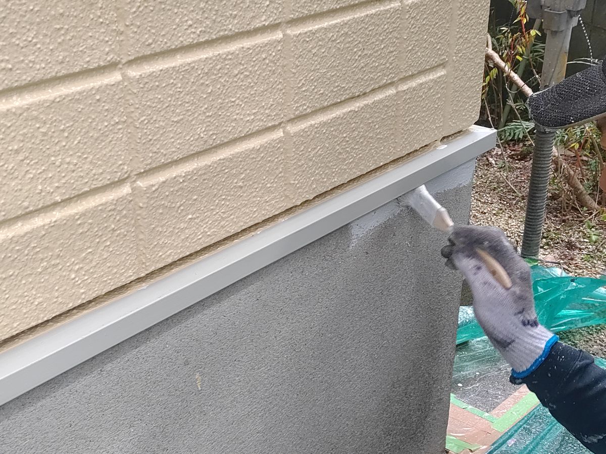 本日は、外壁張替部の下塗りをさせて頂いております。