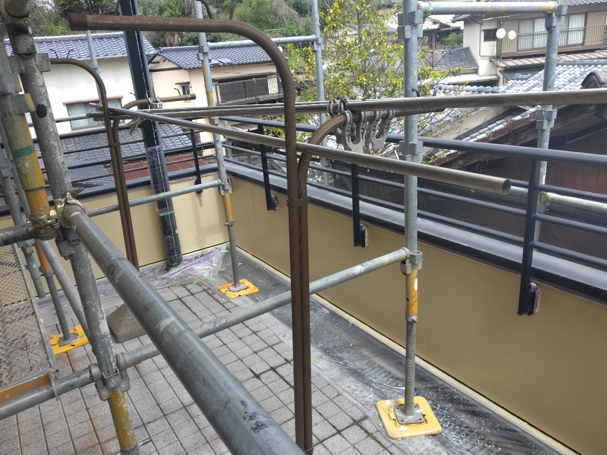 その要望にお応え頂きながら、塗装が安全にできる足場を組んで頂いております!