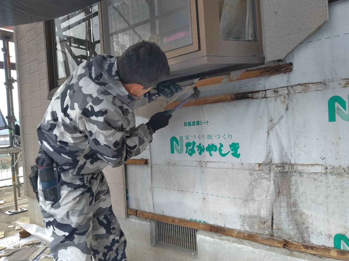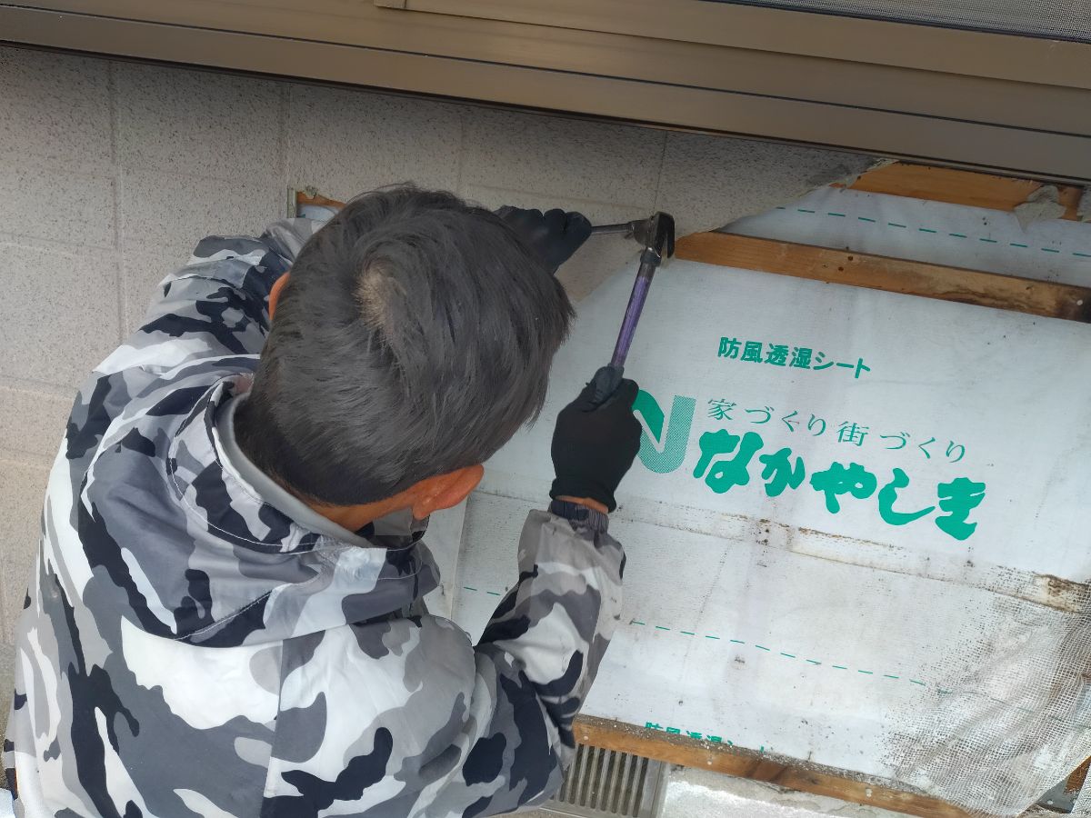 撤去をして、下地を作り防水シートを張って、その上から新しい壁を張ってまいります!