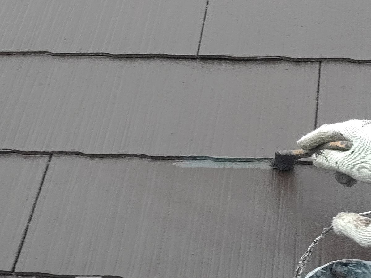 本日は、大屋根下塗り2回目、下屋根下塗り1回目、シーリングをさせて頂いております。
