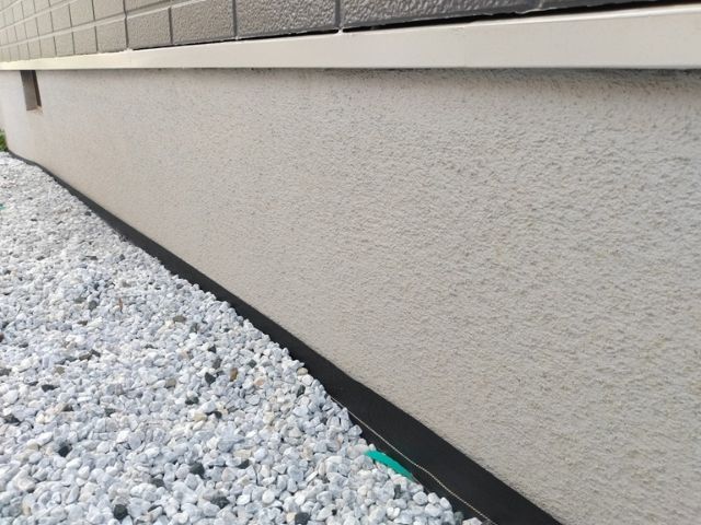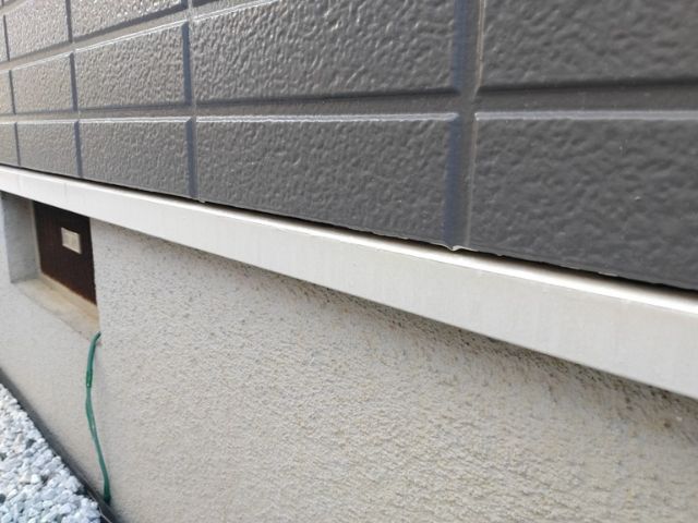 水切り:塗装時のままきれいに保たれていました!水切りを塗装することによって、雨水や土台の腐食、シロアリの発生を防ぐことができます。お住まいの大切な土台を塗装で守っています!