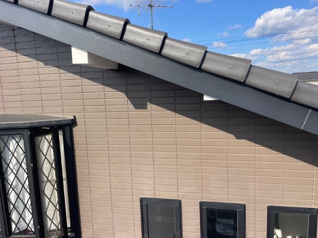 破風:屋根や外壁と比べると材質が違うため耐久年数は低いですが、塗装時のまま綺麗に保たれていました!剥がれもなく良好です!