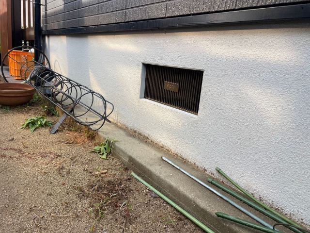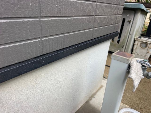 水切り:塗装時のままきれいに保たれていました!水切りを塗装することによって、雨水や土台の腐食、シロアリの発生を防ぐことができます。お住まいの大切な土台を塗装で守っています!