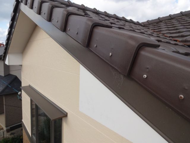 破風:屋根や外壁と比べると材質が違うため耐久年数は低いですが、塗装時のまま綺麗に保たれていました!剥がれもなく良好です!