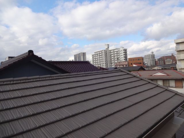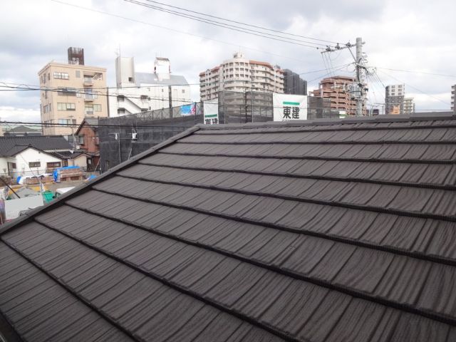 屋根は雨や紫外線からお住まいを守ってくれるので一番劣化が早い部位ですが、3年経過しても剥がれ、色褪せもなく塗装したての状態を維持していました!鉄錆もなく良好です!
