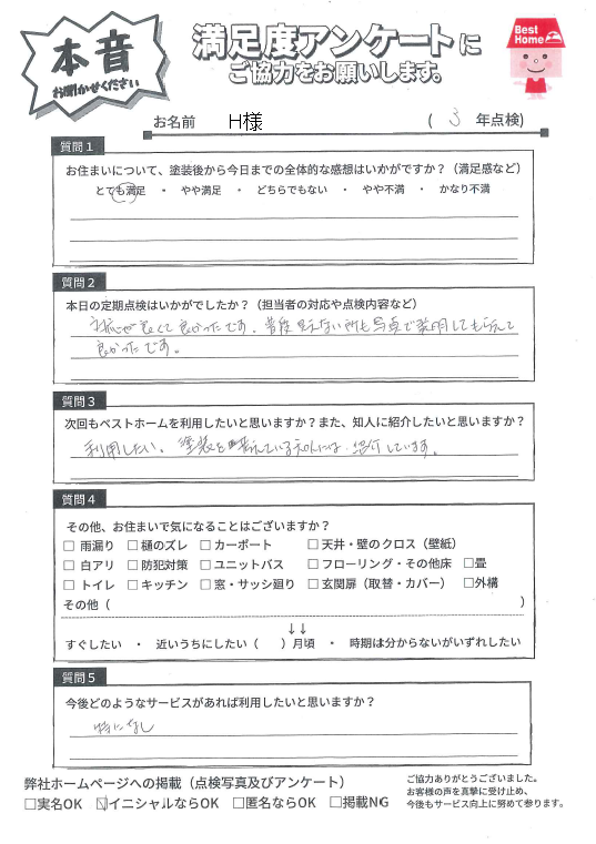 本日は北九州市小倉北区原町にて3年点検に伺い、美観は維持できているか、劣化箇所や補修が必要な箇所はないか確認しました!点検結果、お客様からの声をぜひご参考ください。