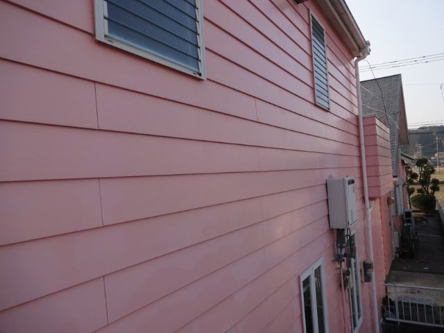 チョーキング(手に白い粉がつく症状)は見られますが、塗料の色を形成している成分が紫外線の影響で出てきているだけですので現状はご安心いただいて大丈夫です。