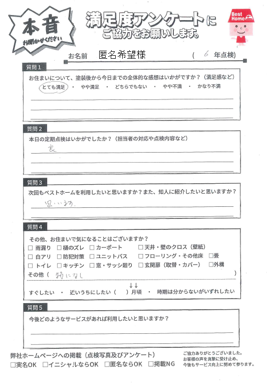 本日は宗像市朝野にて6年点検に伺い、美観は維持できているか、劣化箇所や補修が必要な箇所はないか確認しました!点検結果、お客様からの声をぜひご参考ください。