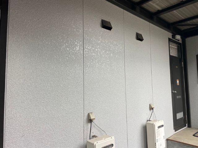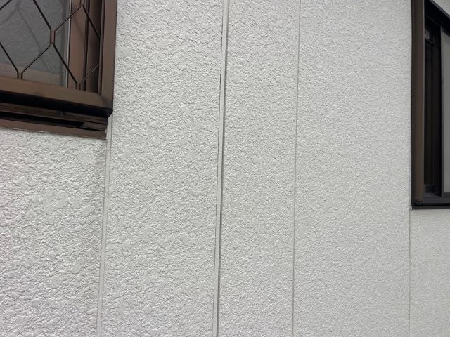 塗装を行い5年が経過しておりますが剥がれ、色褪せもなくキレイに保たれていました!コーキングの劣化もなく防水効果も持続しております!