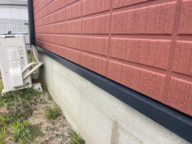 水切り:塗装時のままきれいに保たれていました!水切りを塗装することによって、雨水や土台の腐食、シロアリの発生を防ぐことができます。お住まいの大切な土台を塗装で守っています!