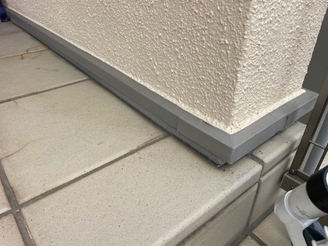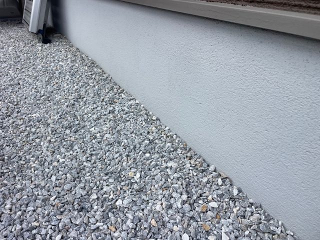 水切り:塗装時のままきれいに保たれていました!水切りを塗装することによって、雨水や土台の腐食、シロアリの発生を防ぐことができます。お住まいの大切な土台を塗装で守っています!