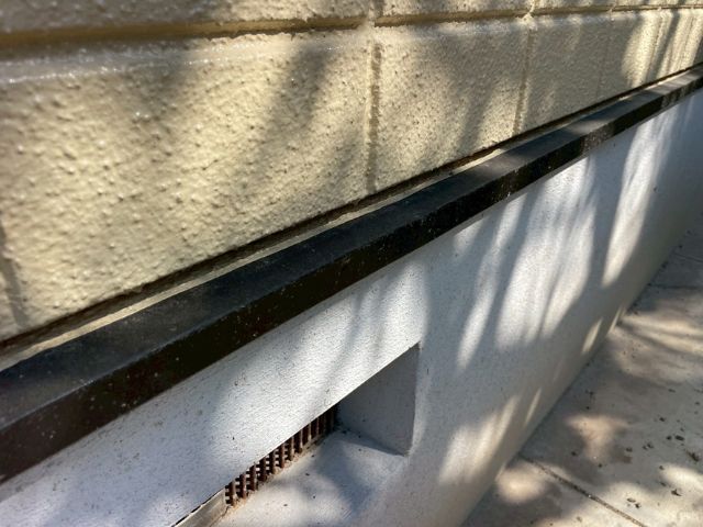 水切り:塗装時のままきれいに保たれていました!水切りを塗装することによって、雨水や土台の腐食、シロアリの発生を防ぐことができます。お住まいの大切な土台を塗装で守っています!