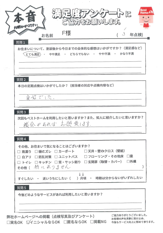 本日は北九州市小倉北区熊谷にて3年点検に伺い、美観は維持できているか、劣化箇所や補修が必要な箇所はないか確認しました!点検結果、お客様からの声をぜひご参考ください。