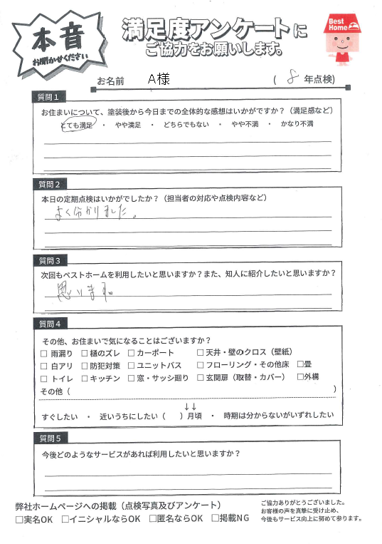 本日は北九州市小倉南区中曽根にて8年点検に伺い、美観は維持できているか、劣化箇所や補修が必要な箇所はないか確認しました!点検結果、お客様からの声をぜひご参考ください。