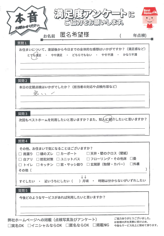 本日は田川郡香春町鏡山にて5年点検に伺い、美観は維持できているか、劣化箇所や補修が必要な箇所はないか確認しました!点検結果、お客様からの声をぜひご参考ください。