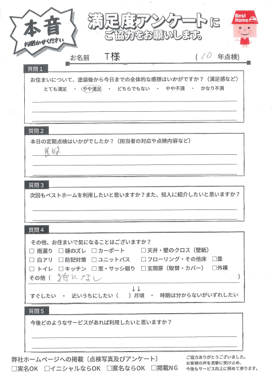 塗装後の満足度アンケート