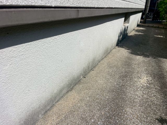 水切り:塗装時のままきれいに保たれていました!水切りを塗装することによって、雨水や土台の腐食、シロアリの発生を防ぐことができます。お住まいの大切な土台を塗装で守っています!