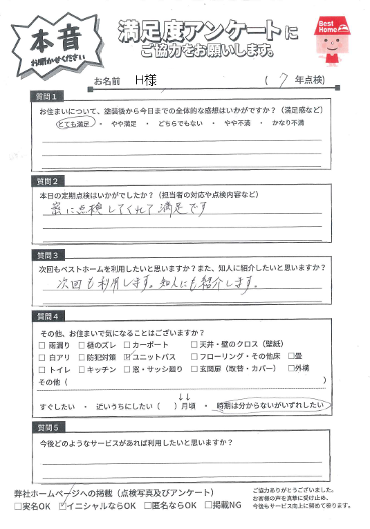 本日は北九州市小倉南区田原にて7年点検に伺い、美観は維持できているか、劣化箇所や補修が必要な箇所はないか確認しました!点検結果、お客様からの声をぜひご参考ください。