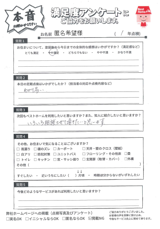 本日は北九州市小倉南区湯川新町にて1年点検に伺い、美観は維持できているか、劣化箇所や補修が必要な箇所はないか確認しました!点検結果、お客様からの声をぜひご参考ください。