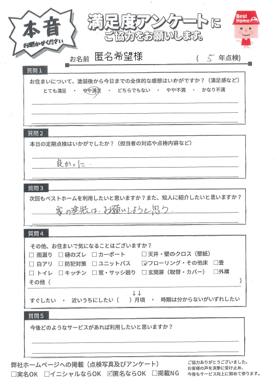 塗装後の満足度アンケート