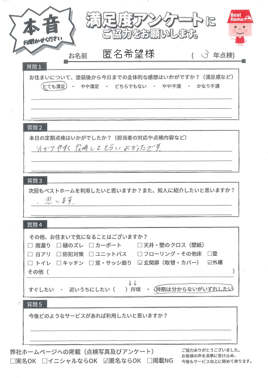 本日は北九州市にて3年点検に伺い、美観は維持できているか、劣化箇所や補修が必要な箇所はないか確認しました!点検結果、お客様からの声をぜひご参考ください。