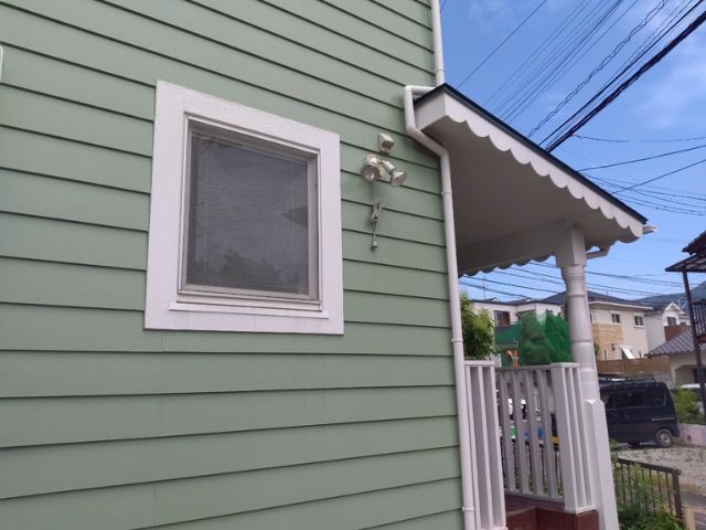 塗装を行い1年が経過しておりますが剥がれ、色褪せもなくキレイに保たれていました!コーキングの劣化もなく防水効果も持続しております!