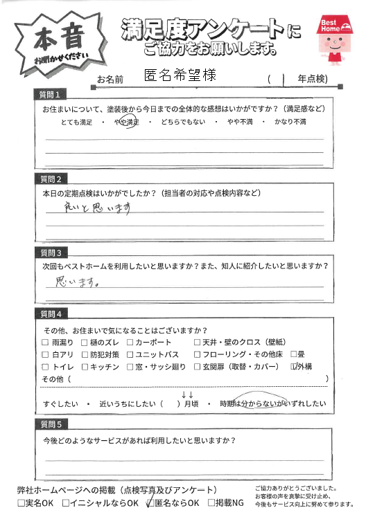 塗装後の満足度アンケート