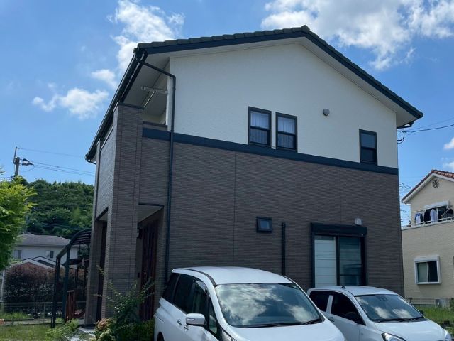 塗装を行い1年が経過しておりますが剥がれ、色褪せもなくキレイに保たれていました!コーキングの劣化もなく防水効果も持続しております!
