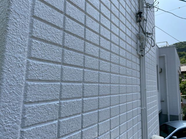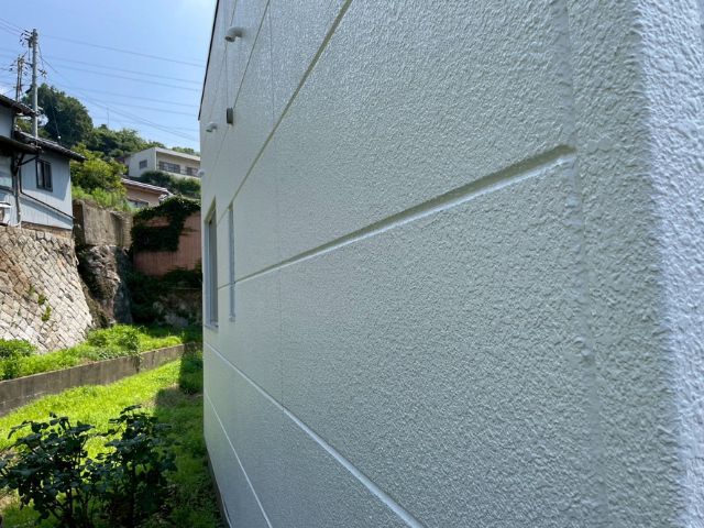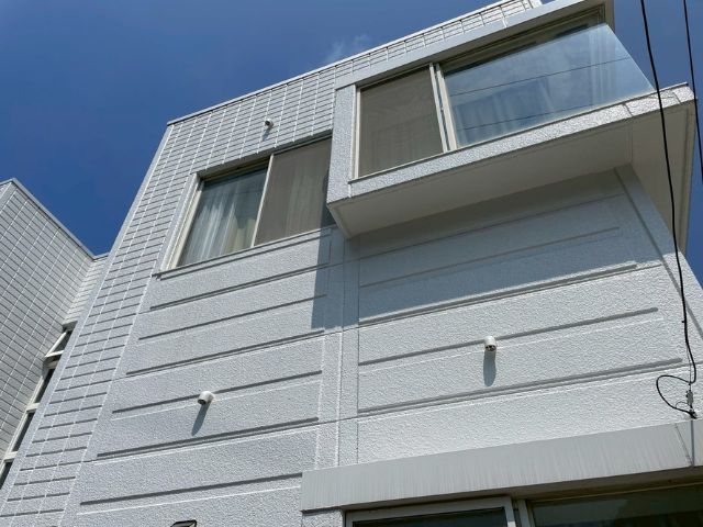 塗装を行い1年が経過しておりますが剥がれ、色褪せもなくキレイに保たれていました!コーキングの劣化もなく防水効果も持続しております!