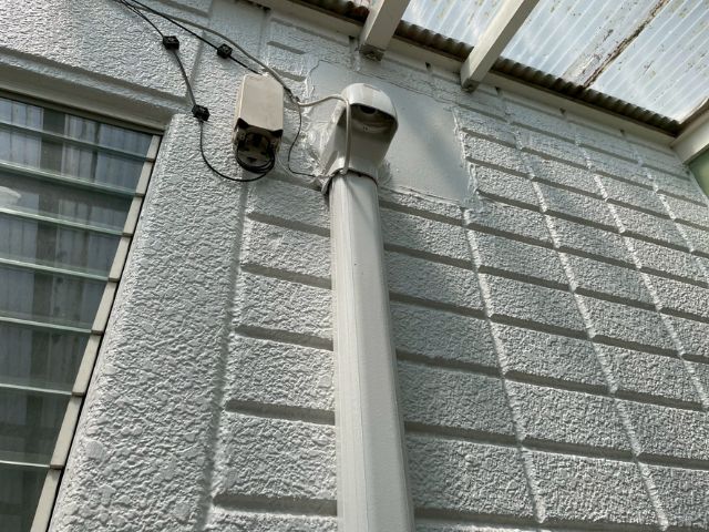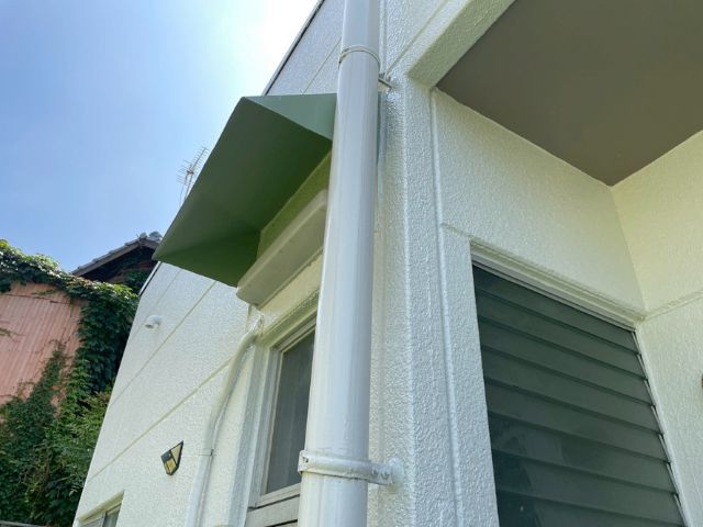 雨樋:塗装時のままきれいに保たれていました!水切りを塗装することによって、雨水や土台の腐食、シロアリの発生を防ぐことができます。お住まいの大切な土台を塗装で守っています!