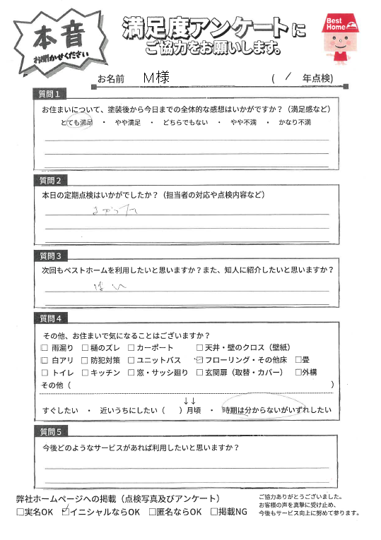 塗装後の満足度アンケート