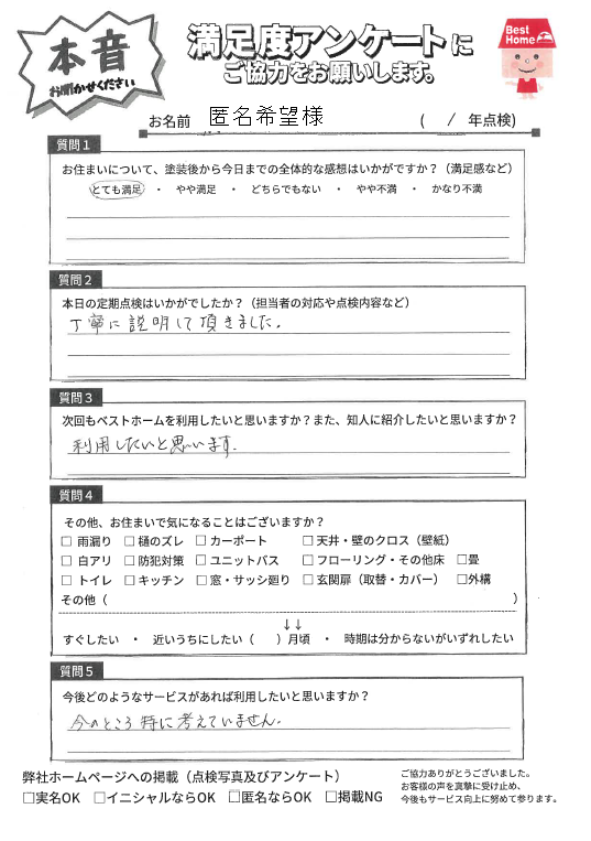 何かご要望がありましたら、いつでもお気軽にご相談ください。来年の点検も伺いますので、今後ともよろしくお願いいたします!