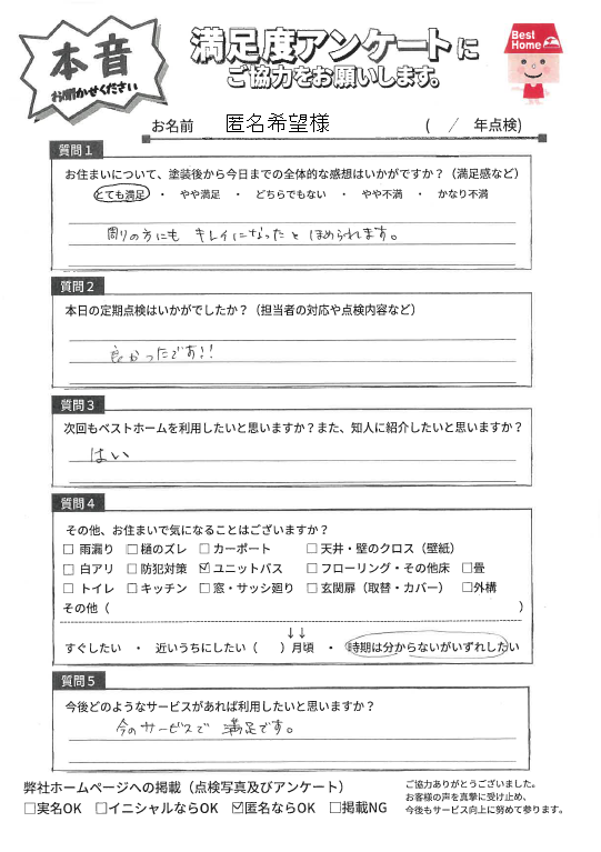 本日は北九州市小倉北区篠崎にて1年点検に伺い、美観は維持できているか、劣化箇所や補修が必要な箇所はないか確認しました!点検結果、お客様からの声をぜひご参考ください。