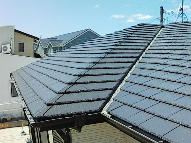 屋根は雨や紫外線からお住まいを守ってくれるので一番劣化が早い部位ですが、7年経過しても剥がれ、色褪せもなく塗装したての状態を維持していました!瓦のズレや留め具にも異常は見当たらなかったのでご安心ください!