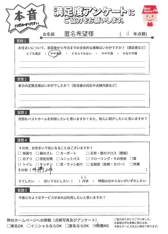本日は豊前市永久にて3年点検に伺い、美観は維持できているか、劣化箇所や補修が必要な箇所はないか確認しました!点検結果、お客様からの声をぜひご参考ください。