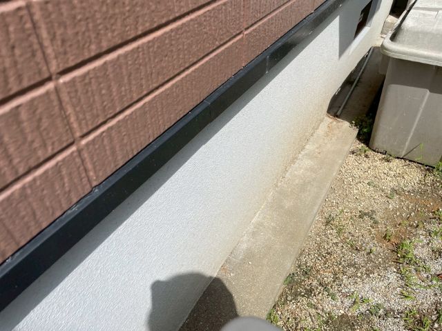 水切り:塗装時のままきれいに保たれていました!水切りを塗装することによって、雨水や土台の腐食、シロアリの発生を防ぐことができます。お住まいの大切な土台を塗装で守っています!