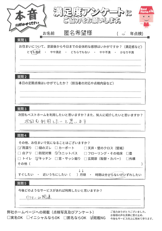 次回もべストホームを利用したいと思いますか?
