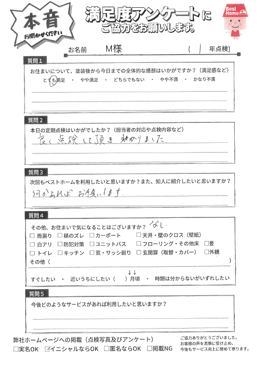 塗装後の満足度アンケート