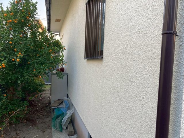 塗装を行い8年が経過しておりますが剥がれ、色褪せもなくキレイに保たれていました!コーキングの劣化もなく防水効果も持続しております!