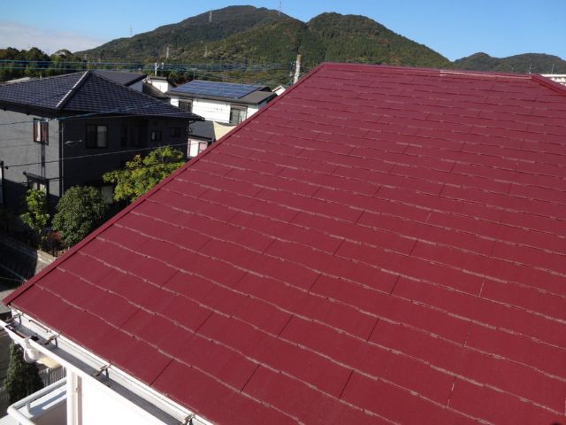屋根は雨や紫外線からお住まいを守ってくれるので一番劣化が早い部位ですが、4年経過しても剥がれ、色褪せもなく塗装したての状態を維持していました!棟鉄板の浮きや捲れも見当たらなかったのでご安心ください!