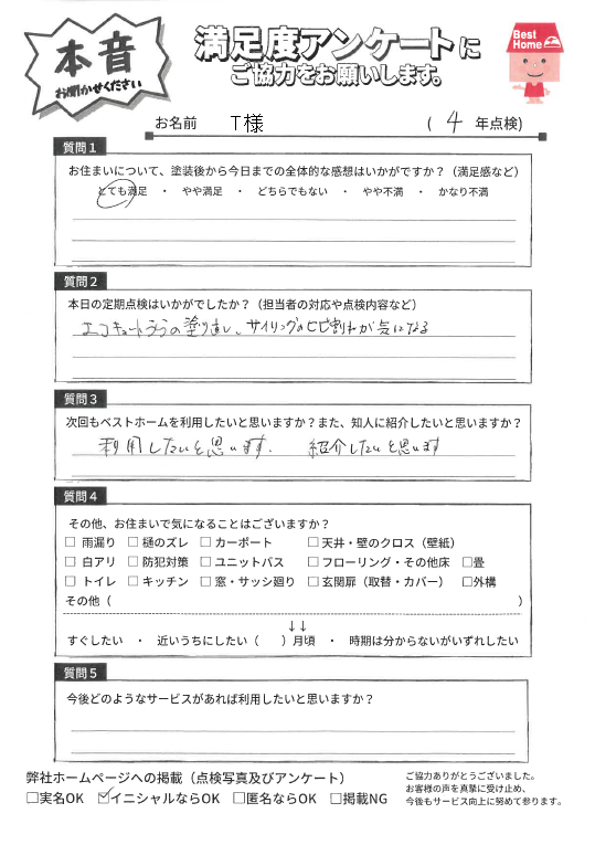 塗装後の満足度アンケート