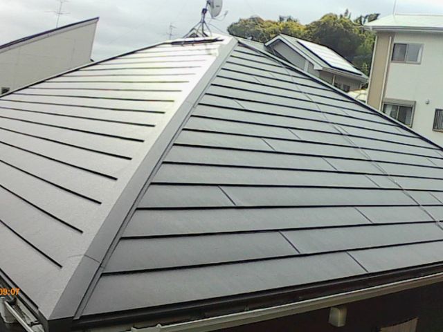 屋根は雨や紫外線からお住まいを守ってくれるので一番劣化が早い部位ですが、1年経過しても剥がれ、色褪せもなく塗装したての状態を維持していました!鉄錆もなく良好です!