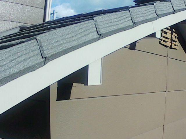 破風:屋根や外壁と比べると材質が違うため耐久年数は低いですが、塗装時のまま綺麗に保たれていました!剥がれもなく良好です!
