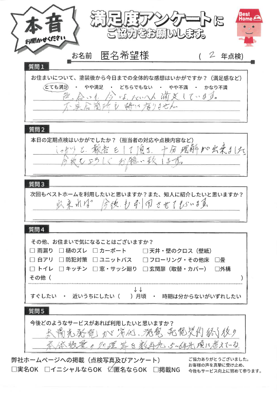 何かご要望がありましたら、いつでもお気軽にご相談ください。来年の点検も伺いますので、今後ともよろしくお願いいたします!